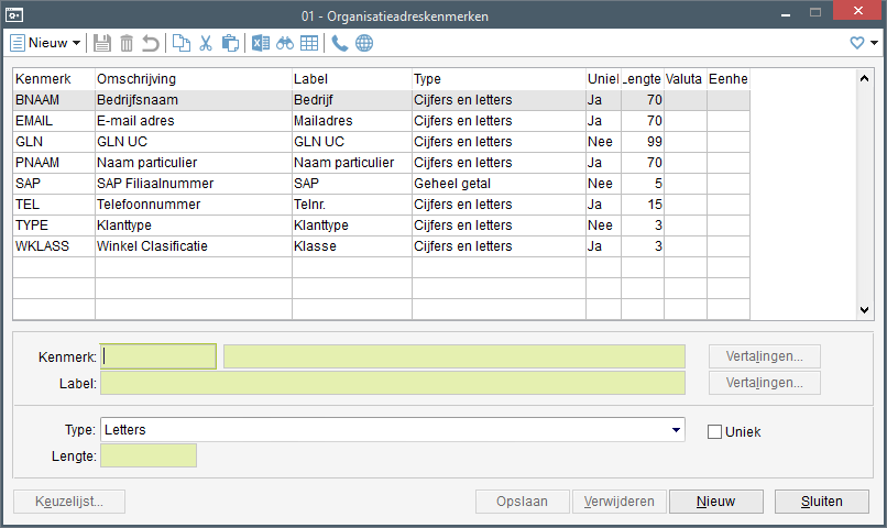 Hier nog een schermafbeelding van de kenmerken hoe wij die hebben toegepast.